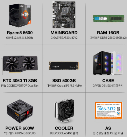 데스크탑 라이젠5 5600/RTX 3060ti/램 32gb